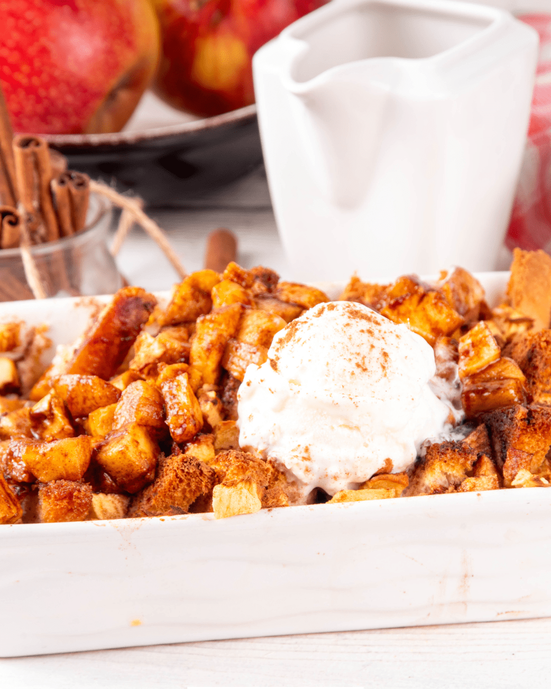 Warm spices like cinnamon and nutmeg bring festive flavors to the casserole, but you can mix it up depending on your preferences or pantry availability.